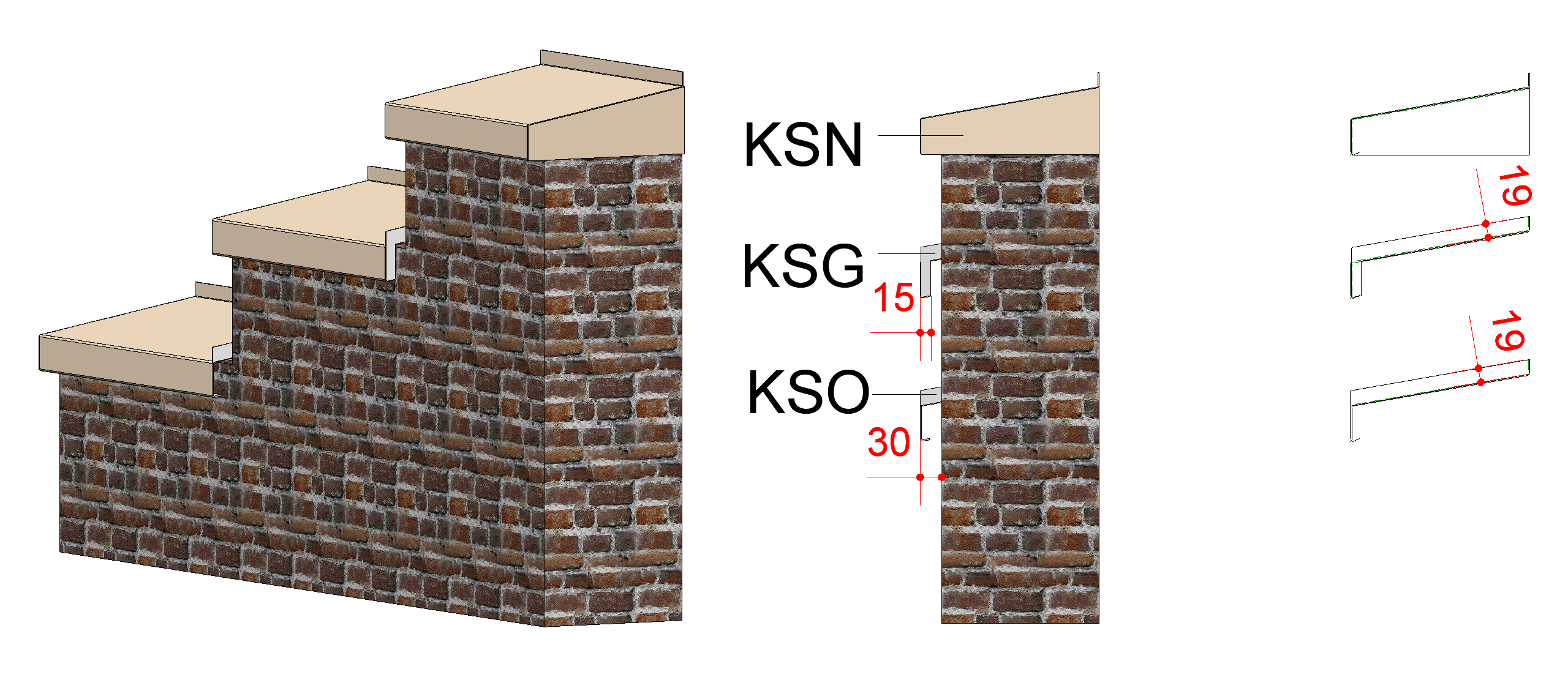 Deze steekt 19mm aan bovenzijde boven het profiel uit en loopt met het afschot van waterslag mee. We houden 3mm vrij tussen opgaande bouwkundige constructie en opstaand kopschot. (zie afbeelding bij toelichting algemeen).
